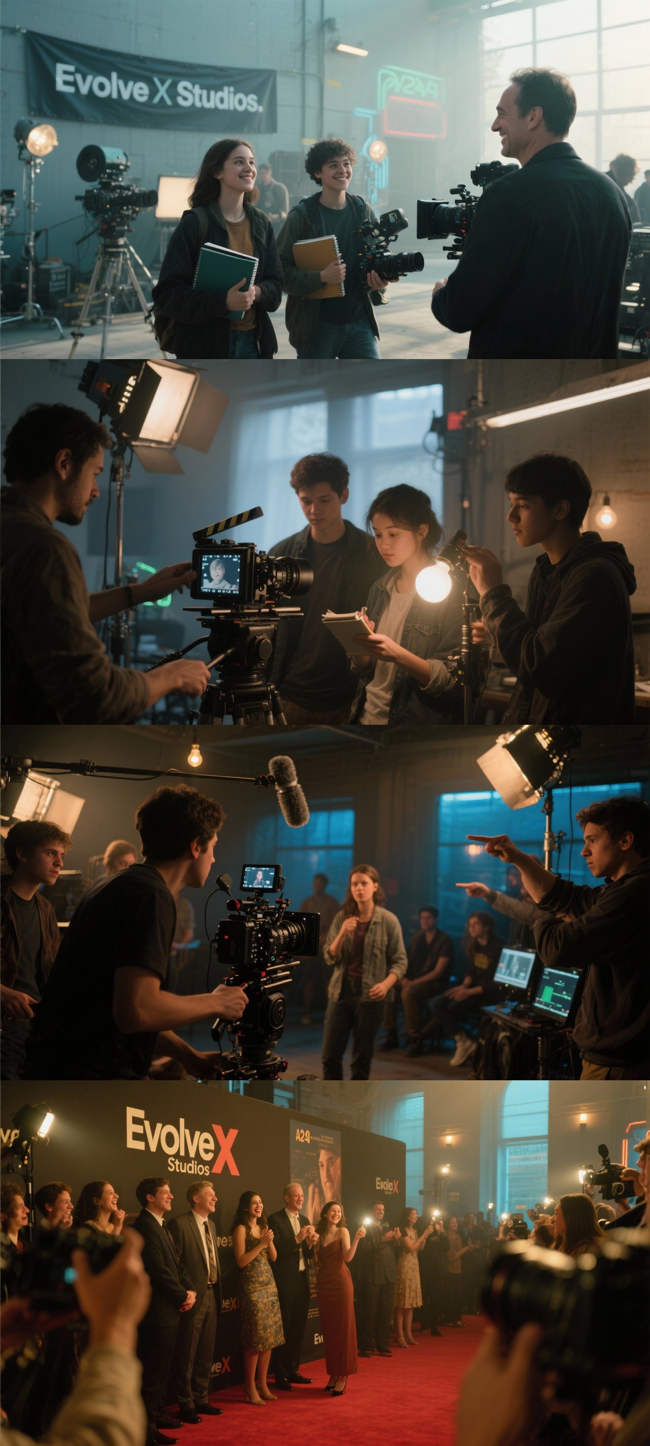 At Evolve X Studios, filmmaking isn’t a class — it’s an adventure. Step into a real-world film production. Join our immersive 4-month Feature Film Experience and collaborate with industry professionals to produce a full-length sci-fi suspense thriller from concept to premiere. Build your skills in film production, earn professional IMDb credits, and share in the film’s success.